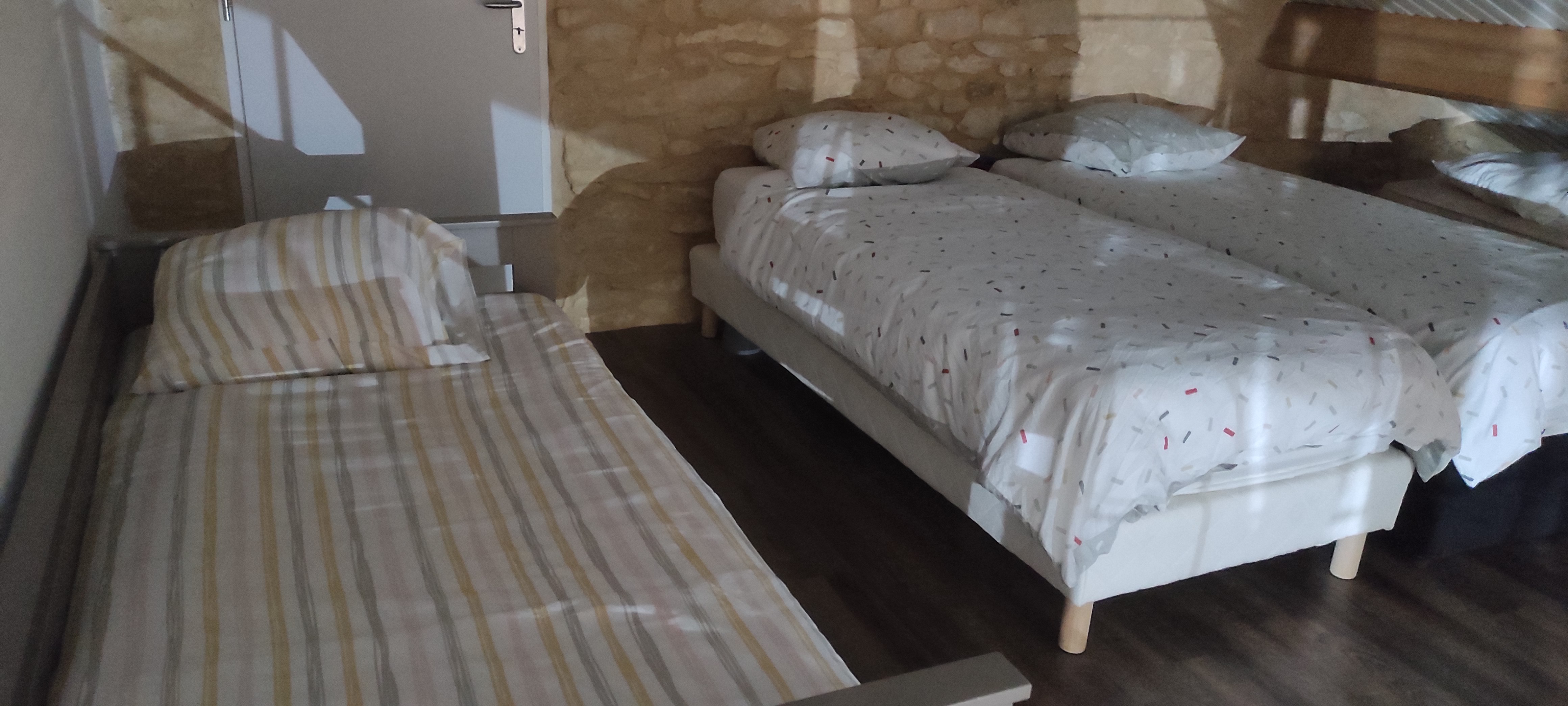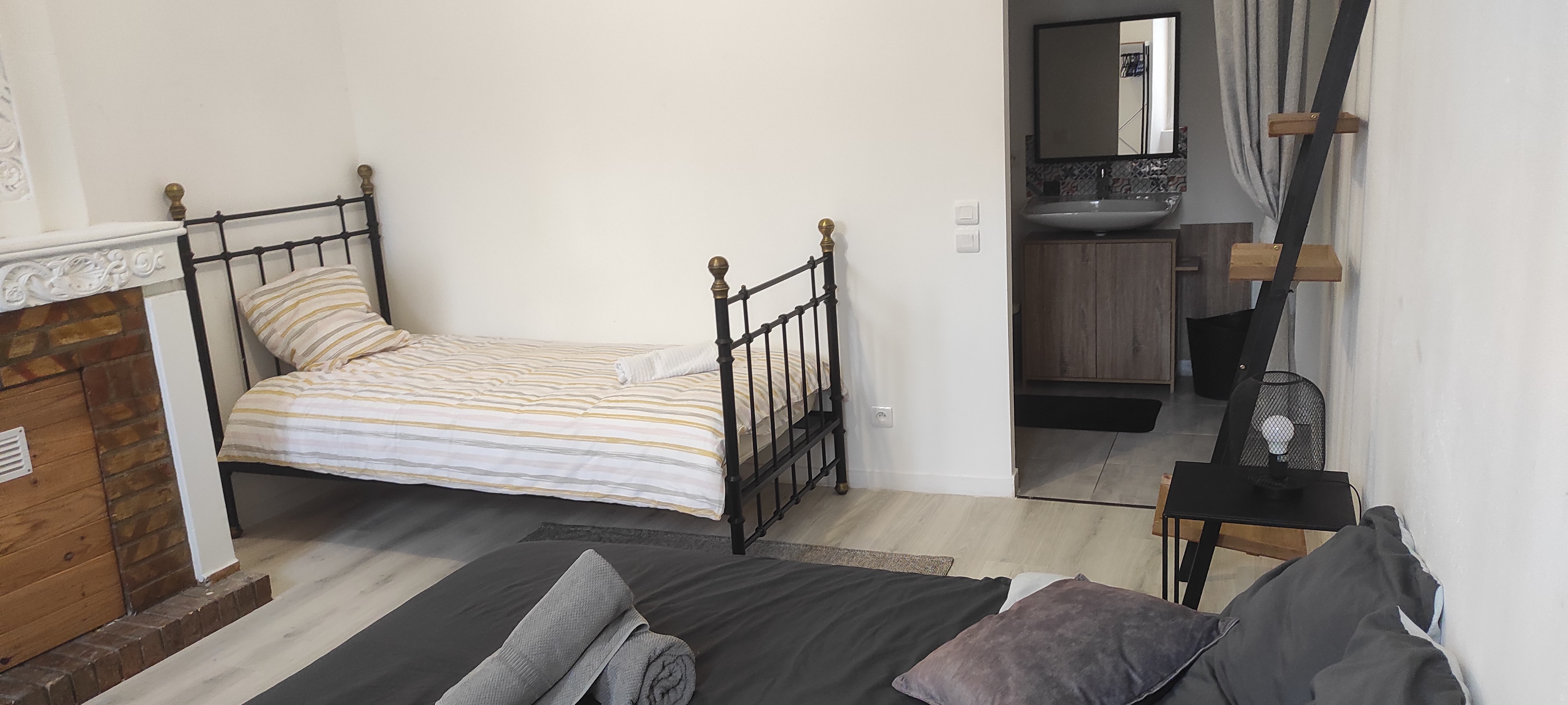 Le Gite Indépendant : Découvrez notre charmant petit gîte indépendant, parfait pour accueillir confortablement jusqu’à 5 personnes supplémentaires. Ce cocon douillet dispose d’une chambre élégamment meublée avec un lit double et un lit simple, accompagnée d’une salle de bain privative et de toilettes indépendantes pour votre intimité et confort.