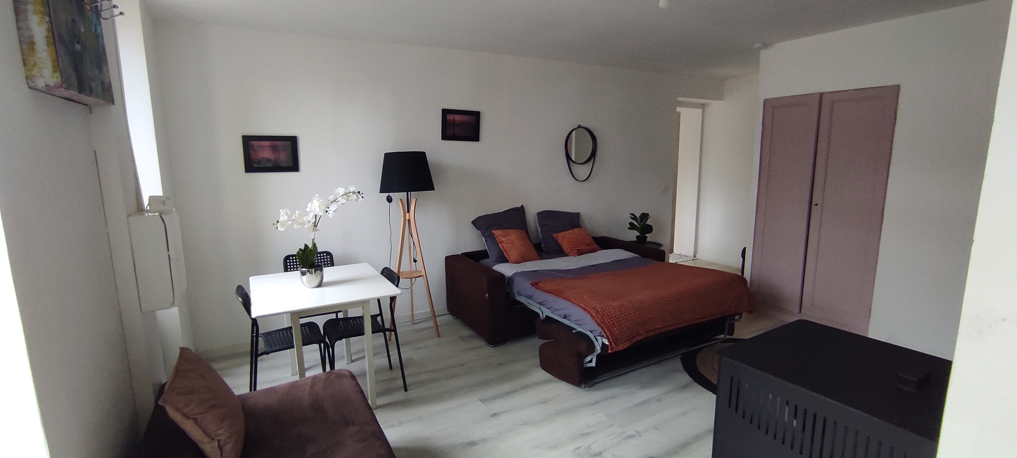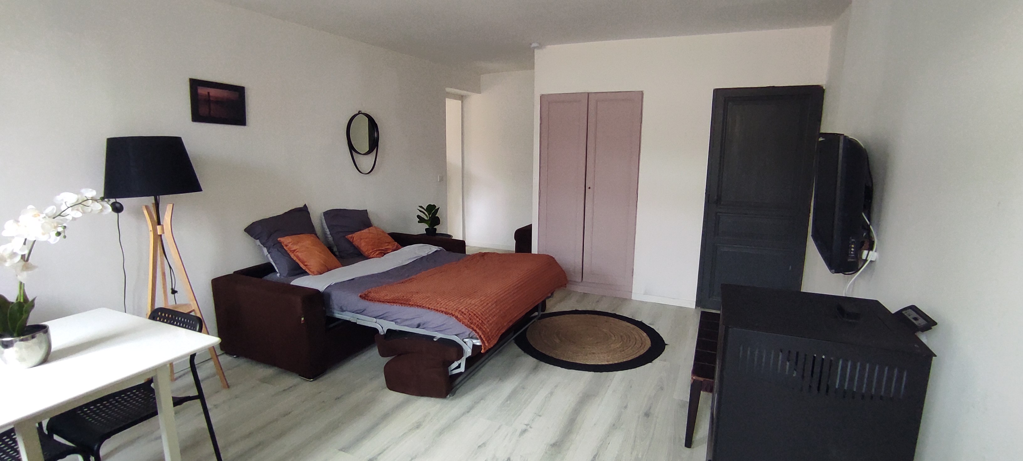 Le salon est un espace de vie convivial où vous pourrez vous détendre sur le canapé convertible deux places