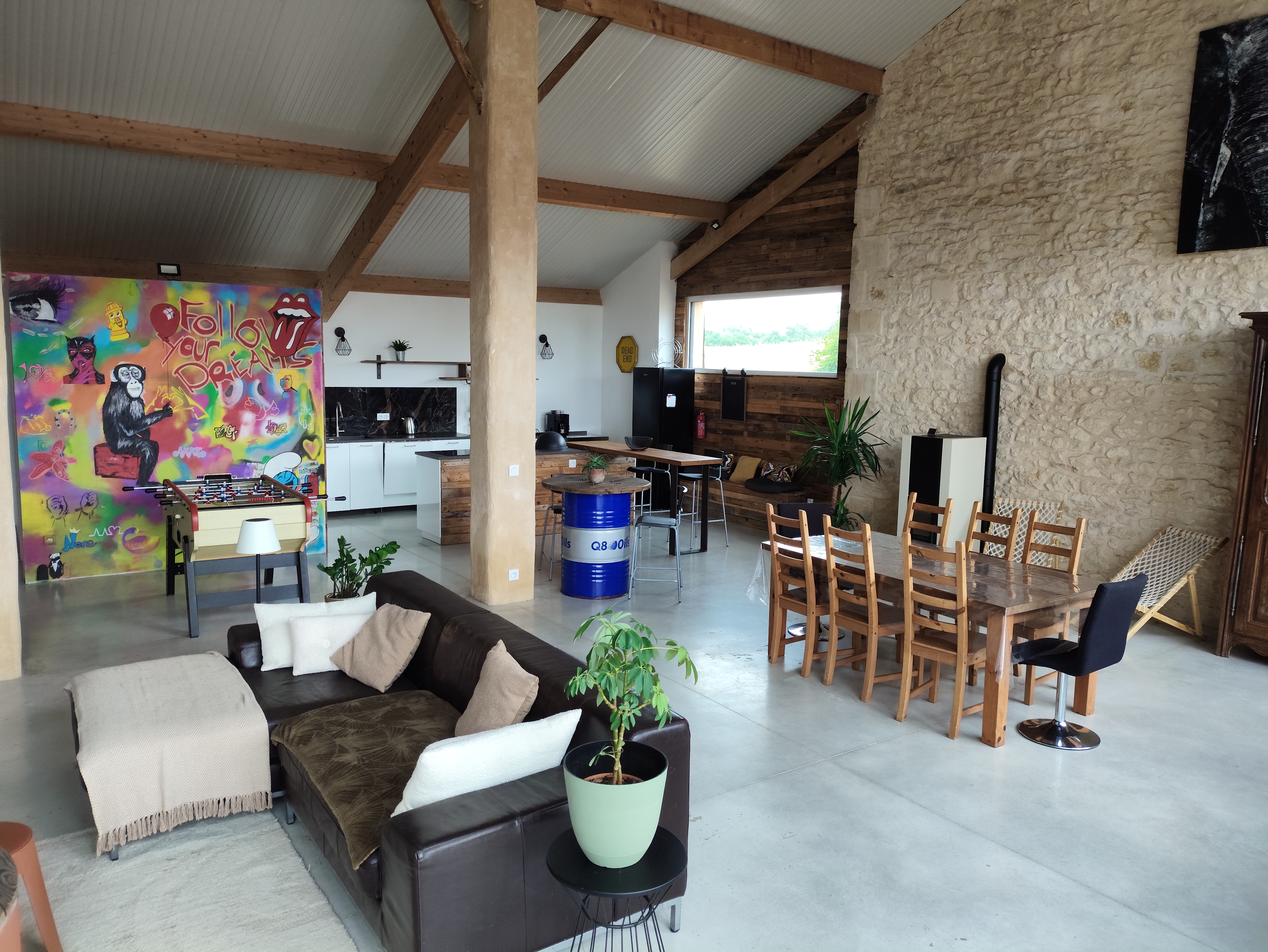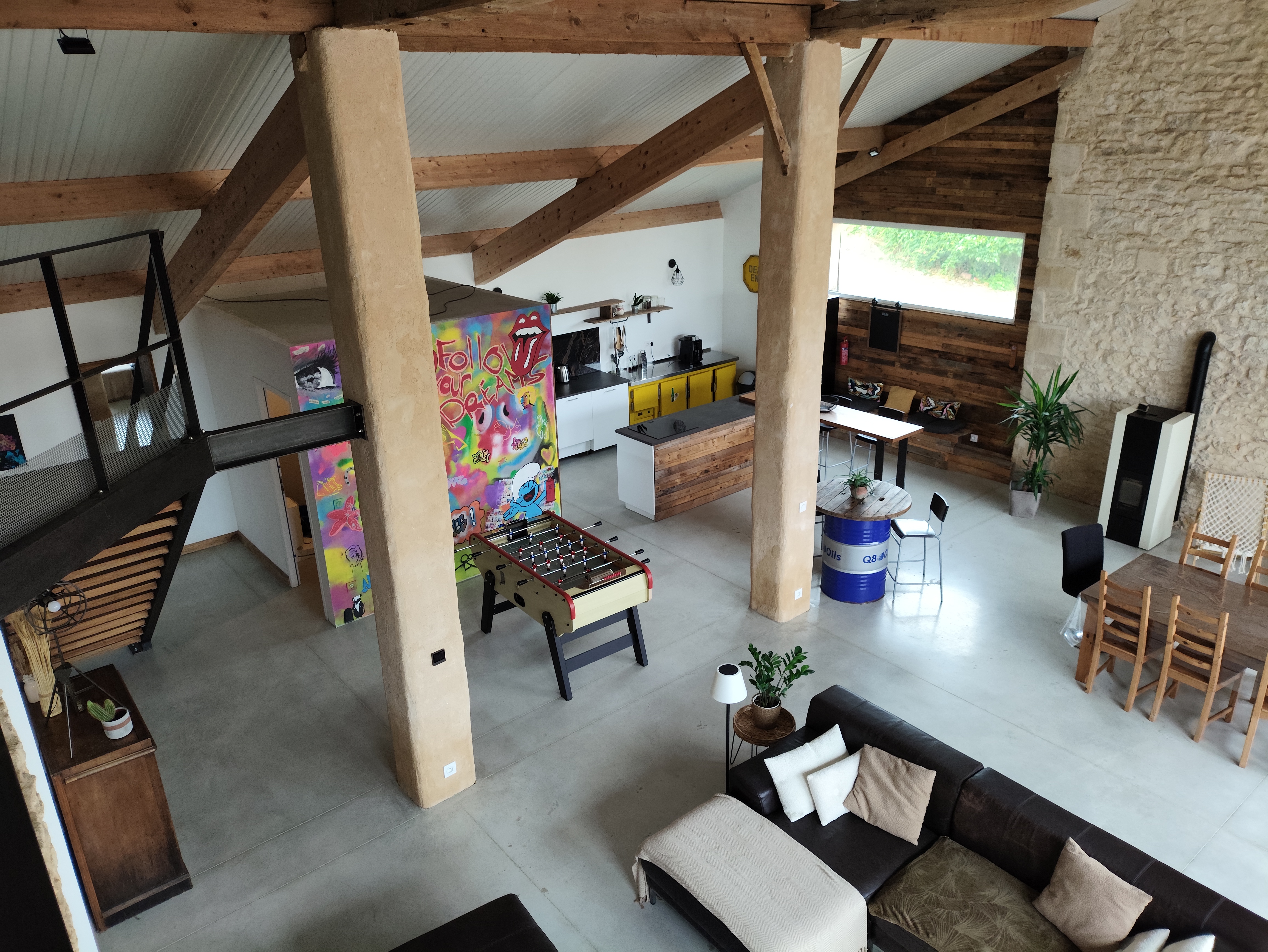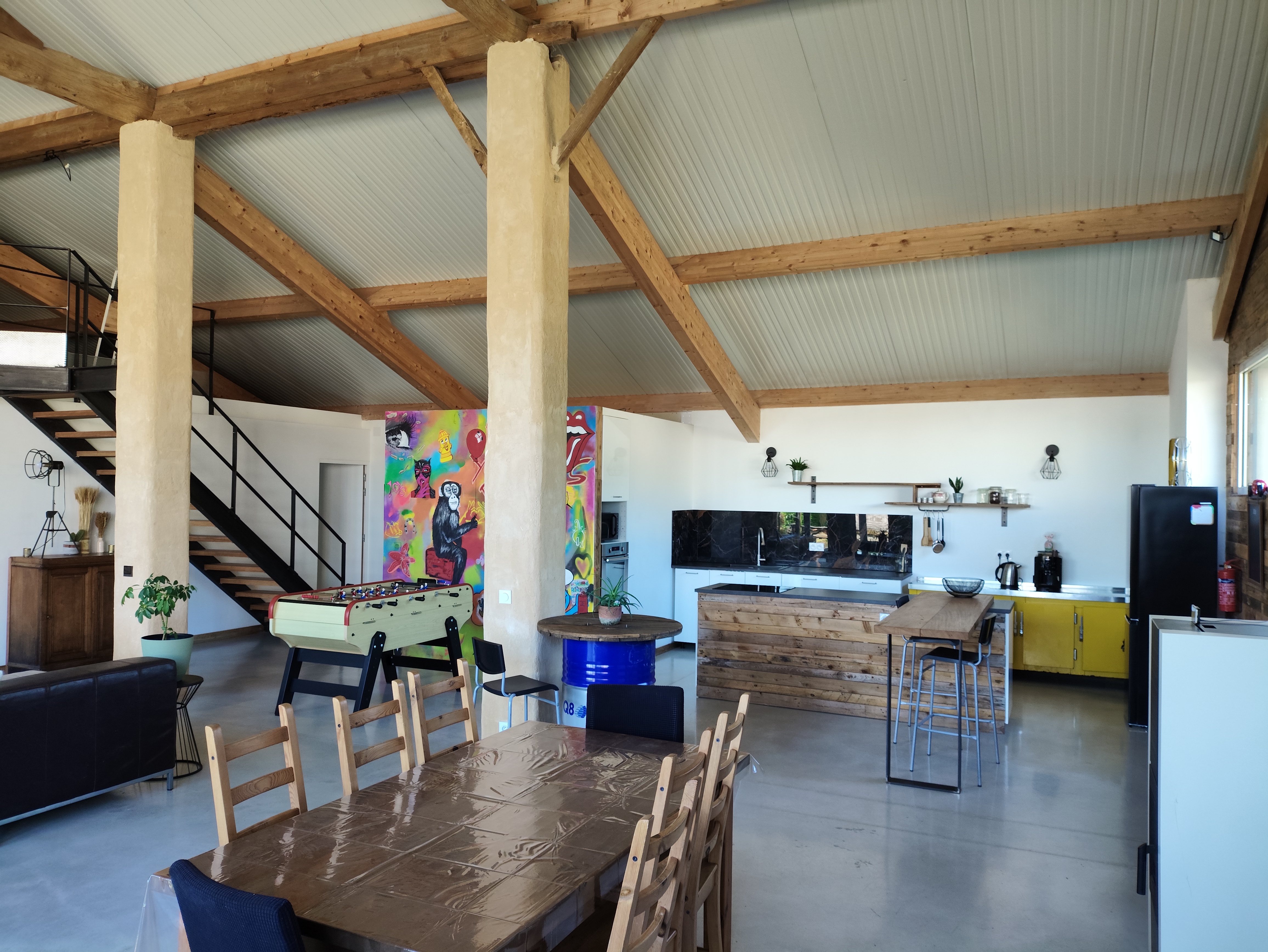 Entrez dans La Grange et découvrez une pièce principale spacieuse de 120m². Cet espace commun est idéal pour se retrouver en famille ou entre amis. Profitez de la convivialité de cet espace ouvert, parfait pour partager des repas, profiter des différents jeux disponibles ou simplement vous détendre ensemble. Une atmosphère chaleureuse et accueillante vous attend dans cette pièce centrale de la Grange.